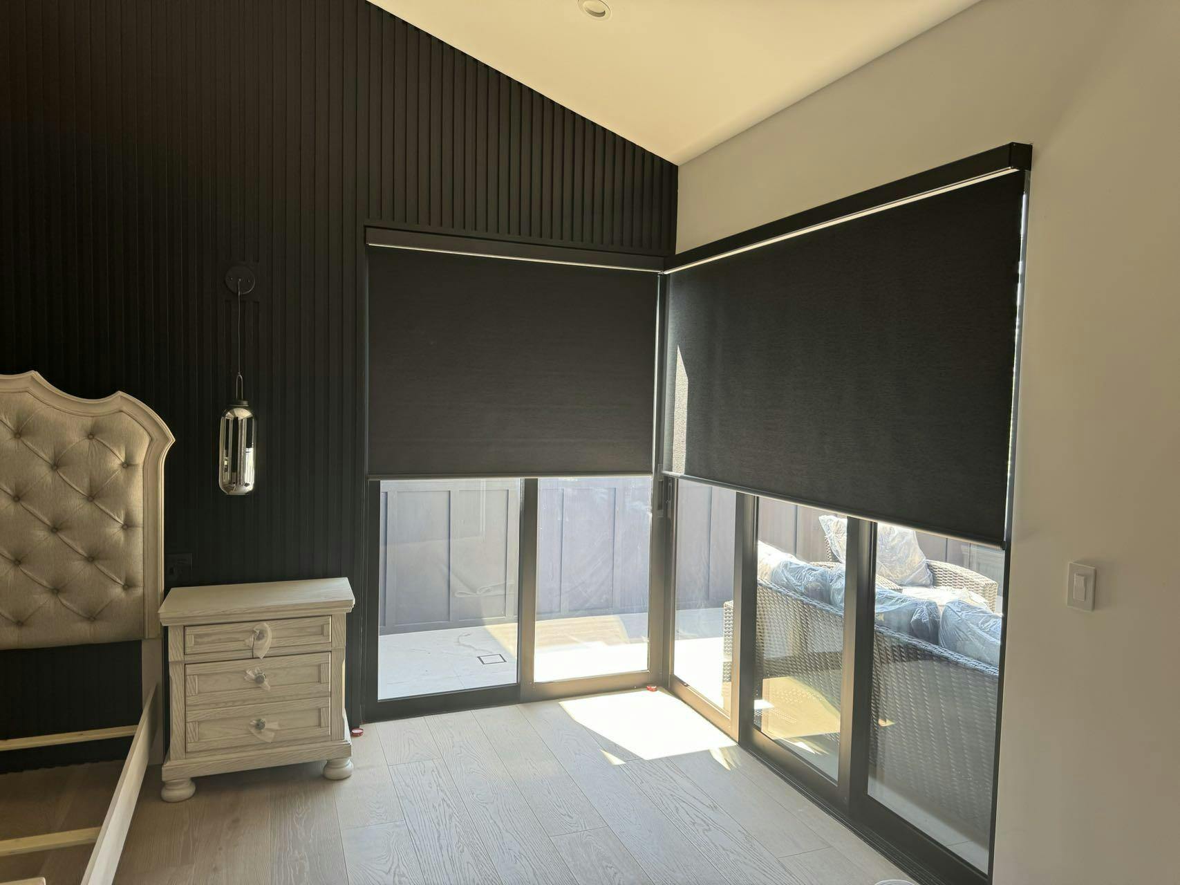The roller shades are made from high-quality blackout materials, offering two levels of opacity: 50% and 100% full blackout. The 50% opacity option gently filters sunlight, providing basic privacy protection, while the 100% full blackout option completely blocks out sunlight, creating a dark indoor environment. This is particularly suitable for bedrooms or media rooms, helping you achieve a more comfortable rest and entertainment experience.